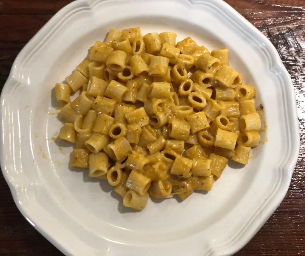 It’s tough to describe how good this is. It is definitely a creamy, cheesy mac and cheese. But the butternut squash lends it a depth of flavor mac and cheese can’t achieve on its own. Add plenty of black pepper for kick, and you have the perfect Fall lunch.